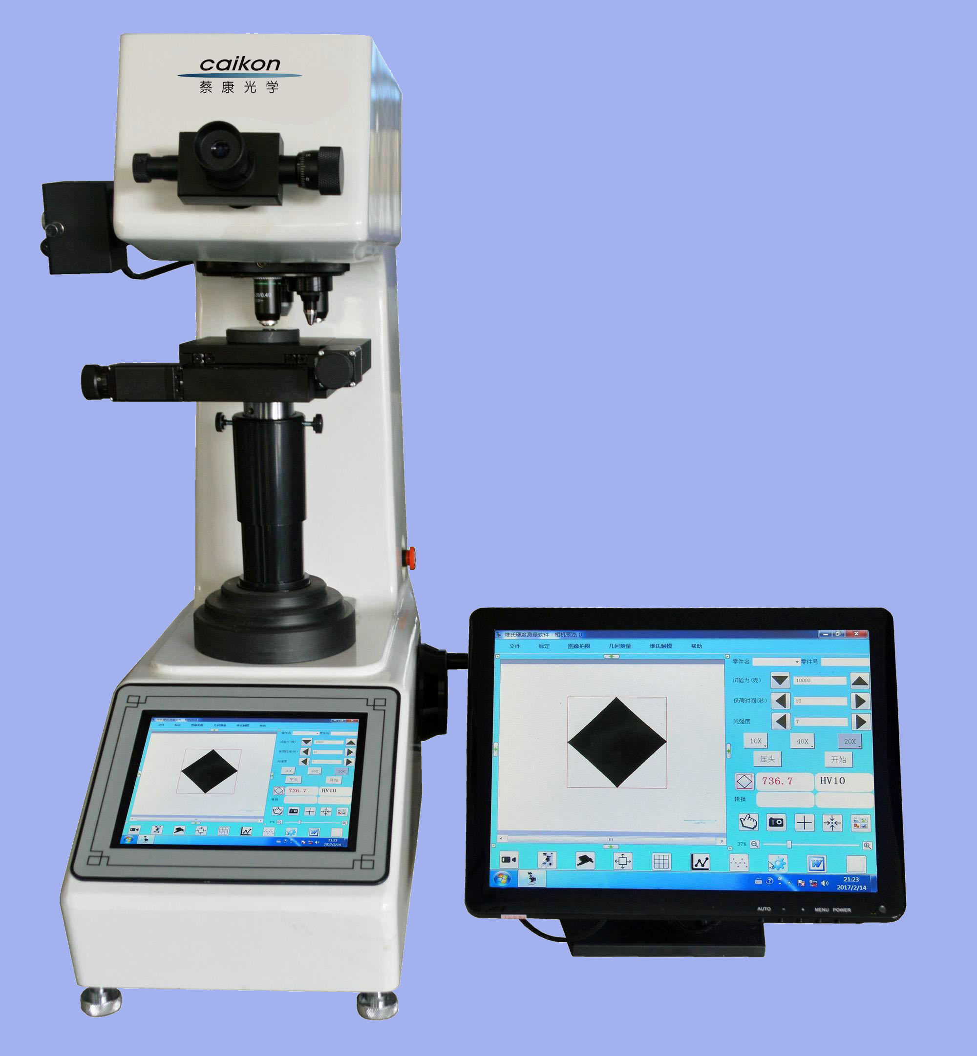 數(shù)顯顯微硬度計和平板電腦一體化設計。搭載Windows 7操作系統(tǒng),具備電腦的所有功能。通過內(nèi)置CCD圖像采集系統(tǒng),在平板電腦上直接顯示測試的壓痕,觸摸屏按鍵,自動測試維氏硬度值,徹底解決了維氏硬度計用顯微鏡測量壓痕對角線長度的方式。避免了顯微鏡的光源給眼睛帶來的刺激和視覺疲勞,保護了試驗人員的視力。