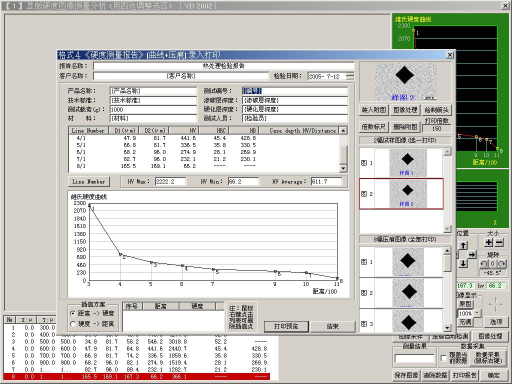本軟件提供了“人工測量”和“自動測量”兩種工作方法來測量硬度值,同時可保存檢驗過程中的圖文信息,可連續采集并分析多張圖像。